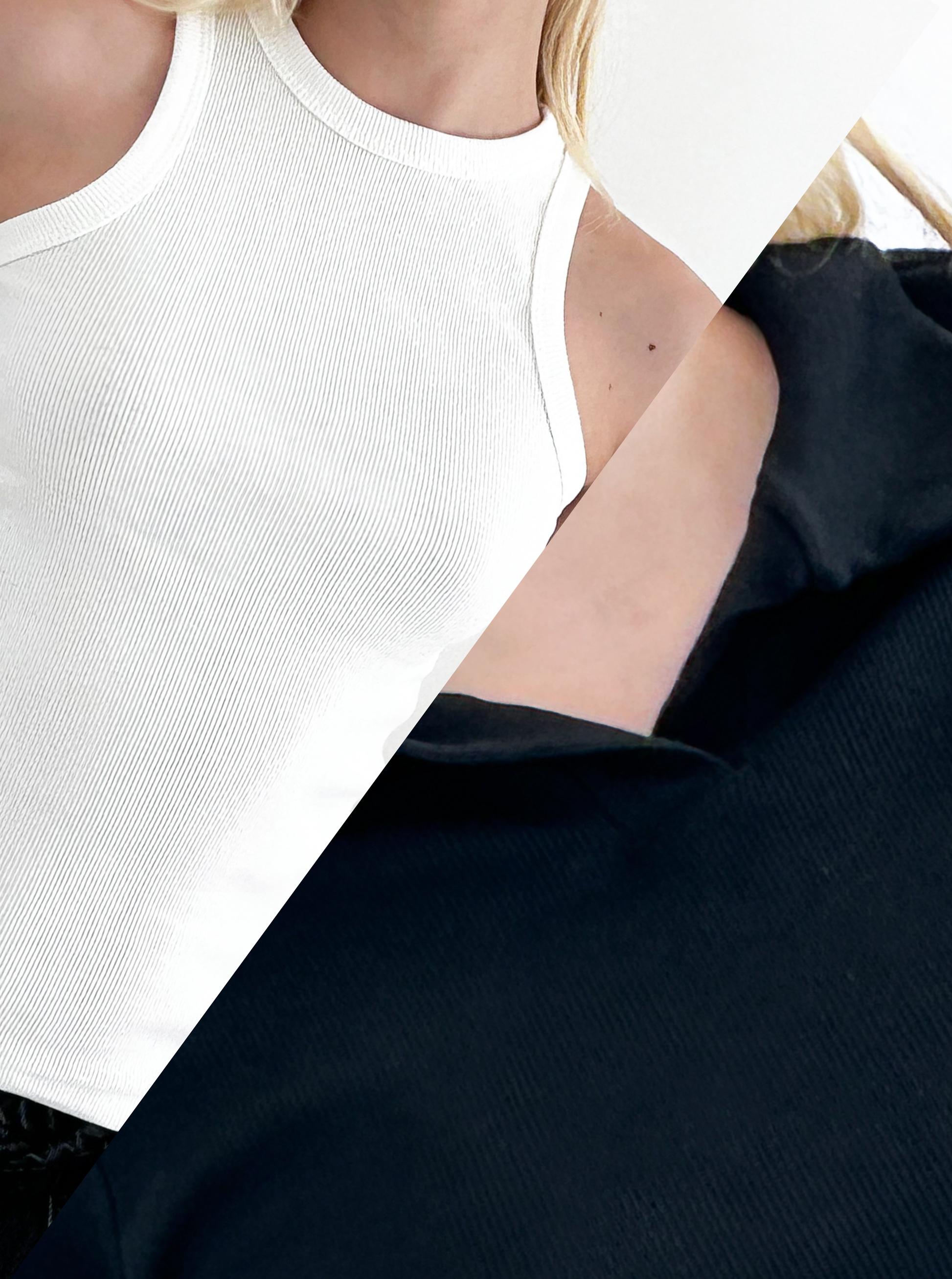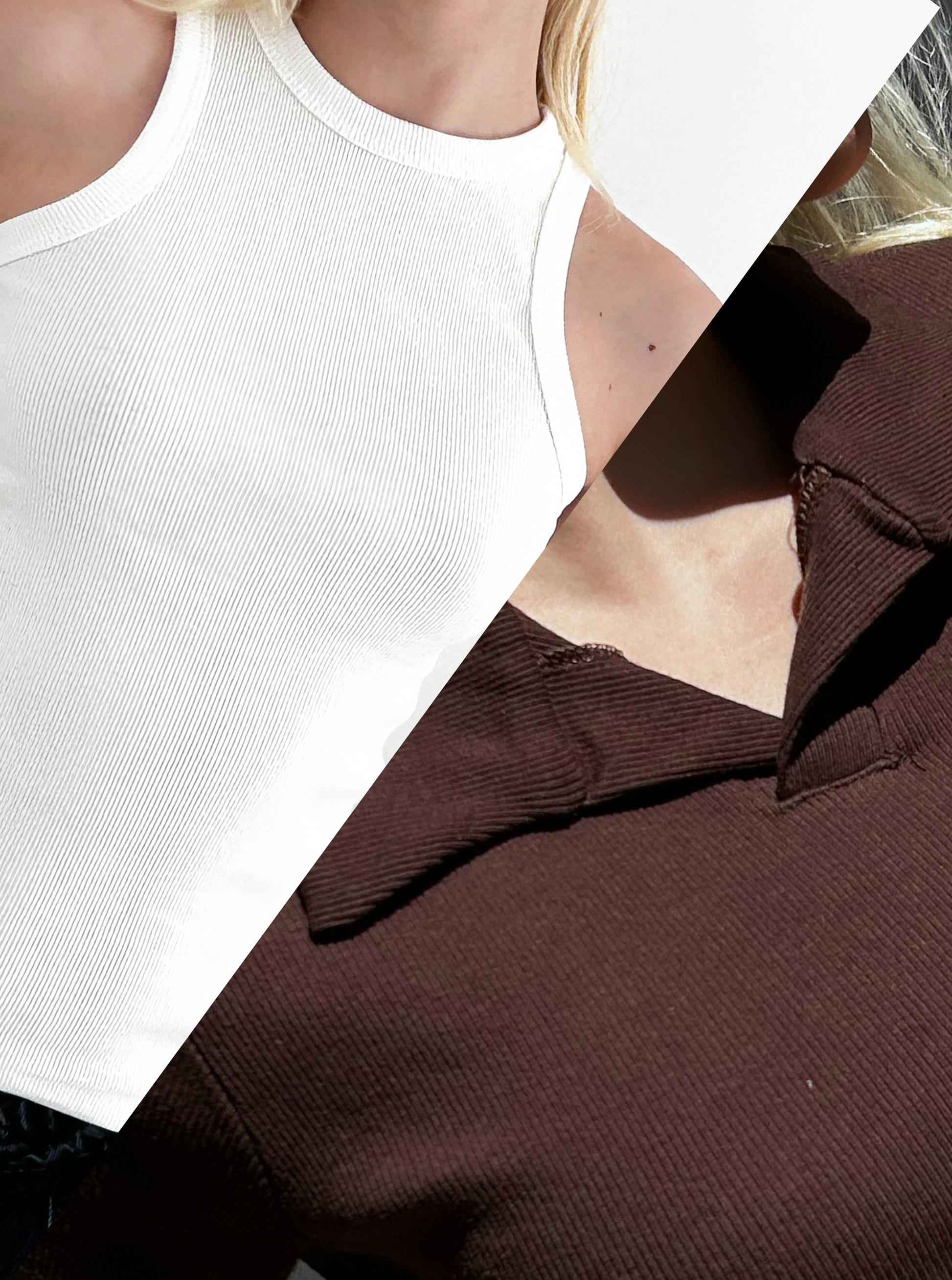 Aqui você leva a nossa regata básica no canelado premium, super versátil, junto com a polo baby no mesmo tecido, moderna e cheia de atitude. Duas peças leves, confortáveis e fáceis de combinar, que vão do casual ao fashion em segundos.