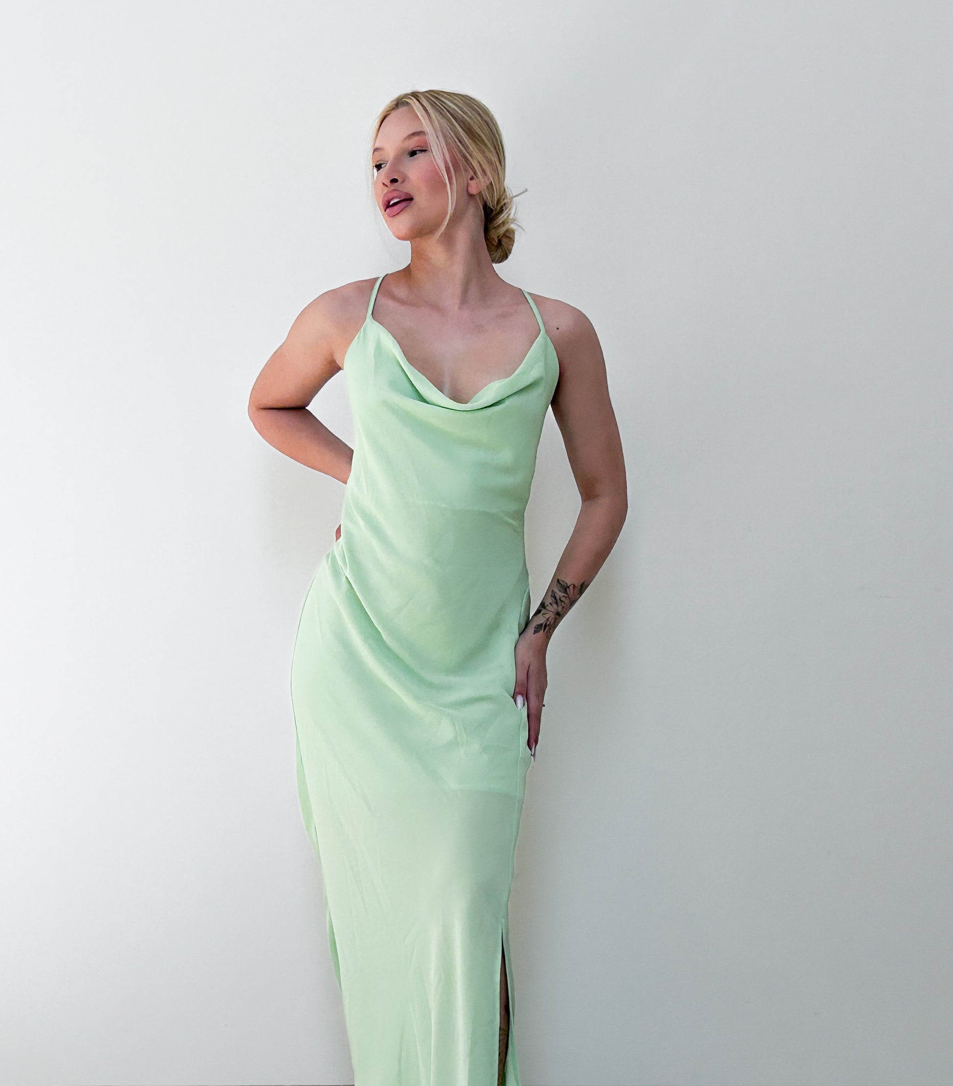 O equilíbrio perfeito entre leveza e sofisticação. O Aura é confeccionado em voil fluido com forro por baixo, garantindo conforto e caimento impecável. Seu decote degagê na frente e no verso traz um toque elegante e sensual na medida certa, enquanto a fenda delicada valoriza o movimento.